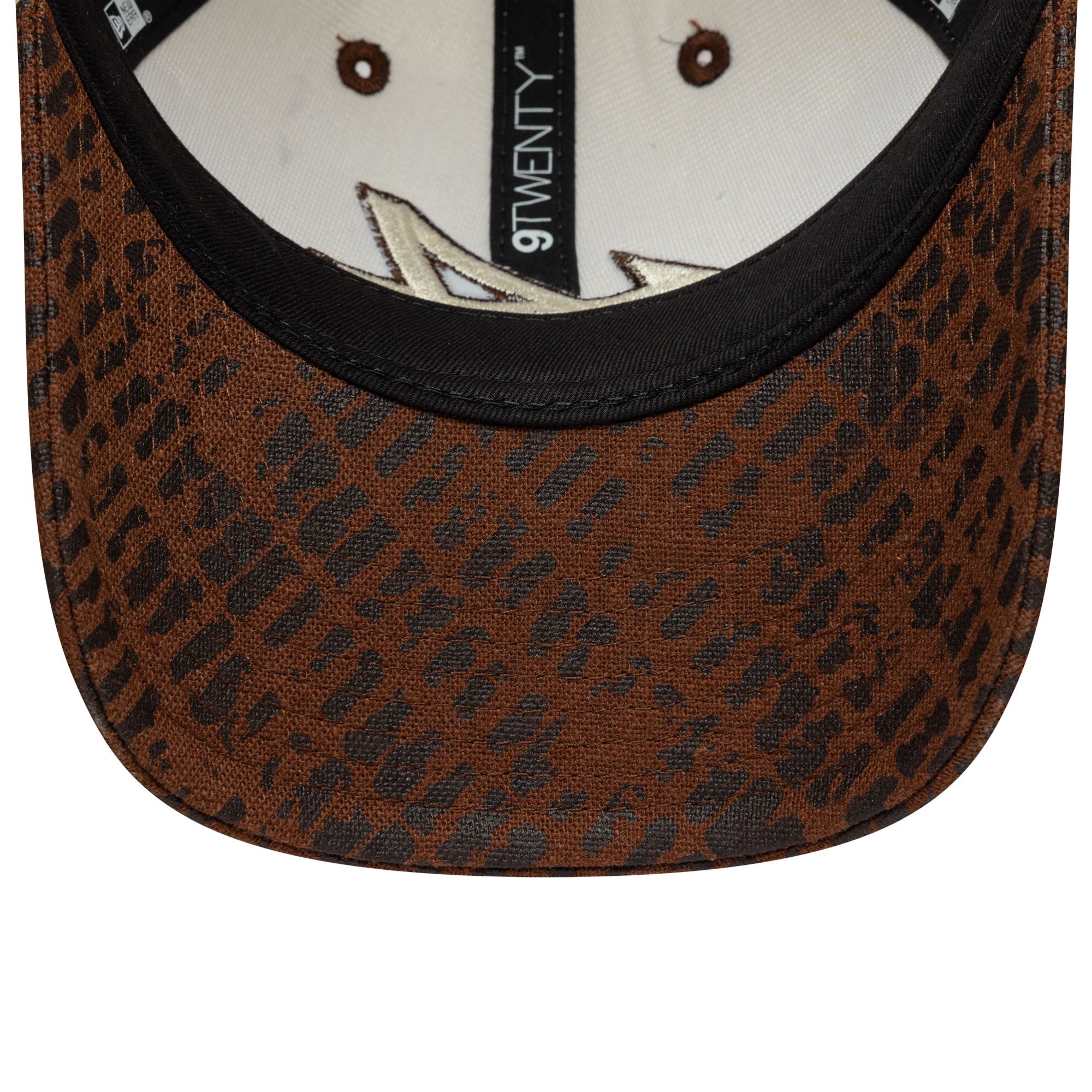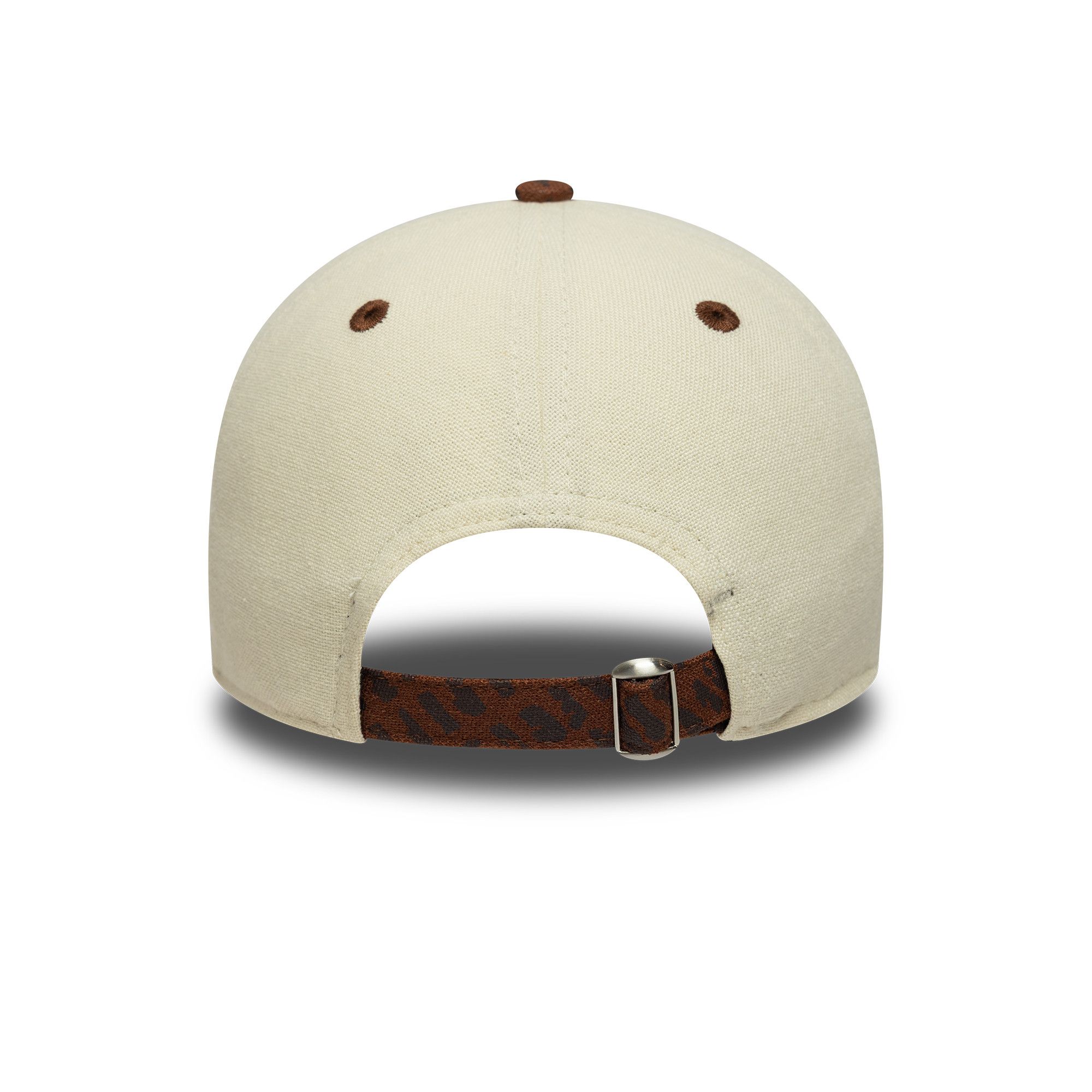 - Stoffverschluss mit Metallschnalle im gemusterten Design für individuelle Größenanpassung, braune Ösen und Top-Button, New Era Logo seitlich