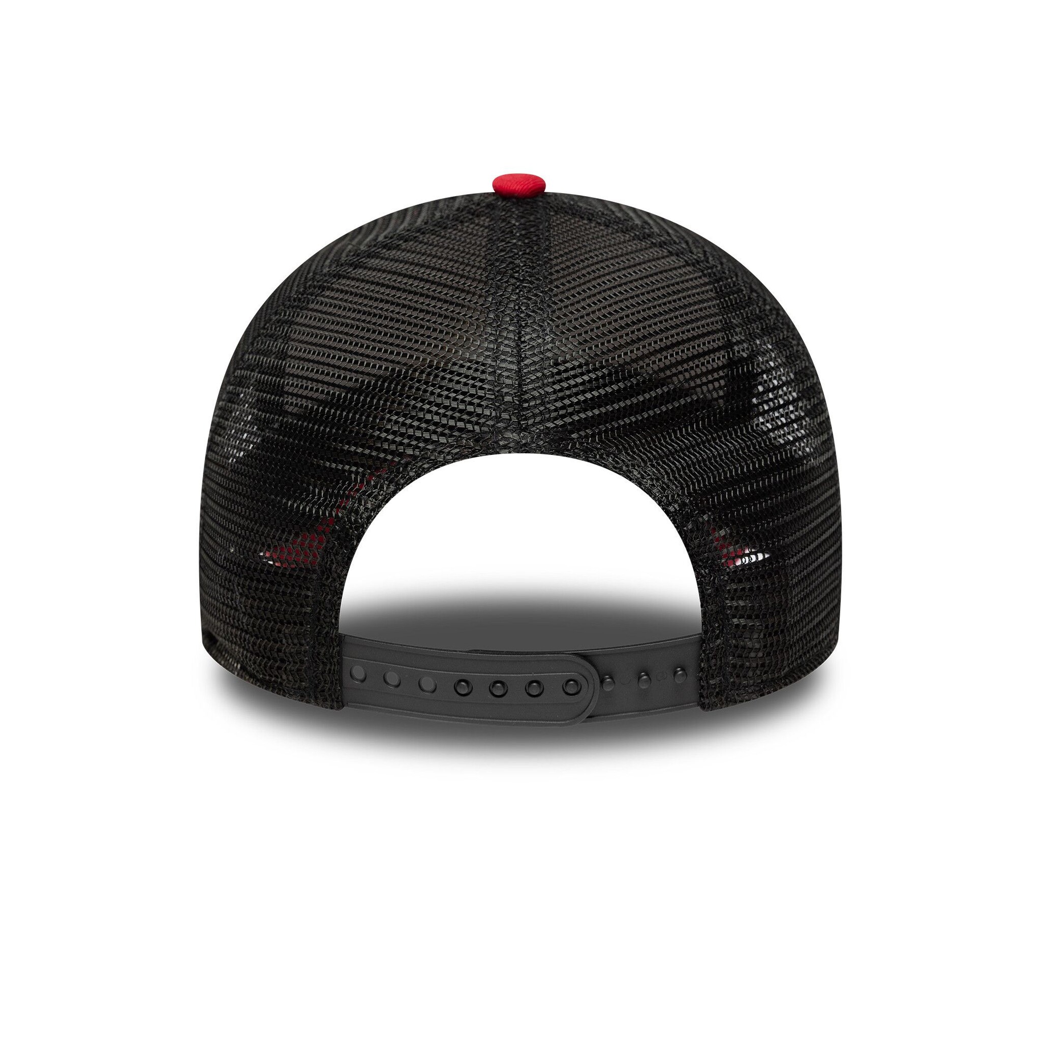 - Snapback-Verschluss in Schwarz für individuelle Größenanpassung, Mesh-Belüftung, New Era Logo seitlich in Rot