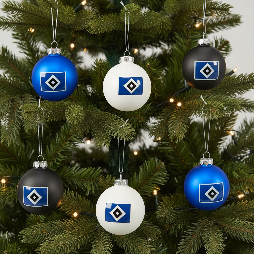 O Tannenbaum, O Tannenbaum: Mit diesem 6er-Set HSV Christbaumkugeln bringst du den Glanz deines Vereins direkt an den Baum.