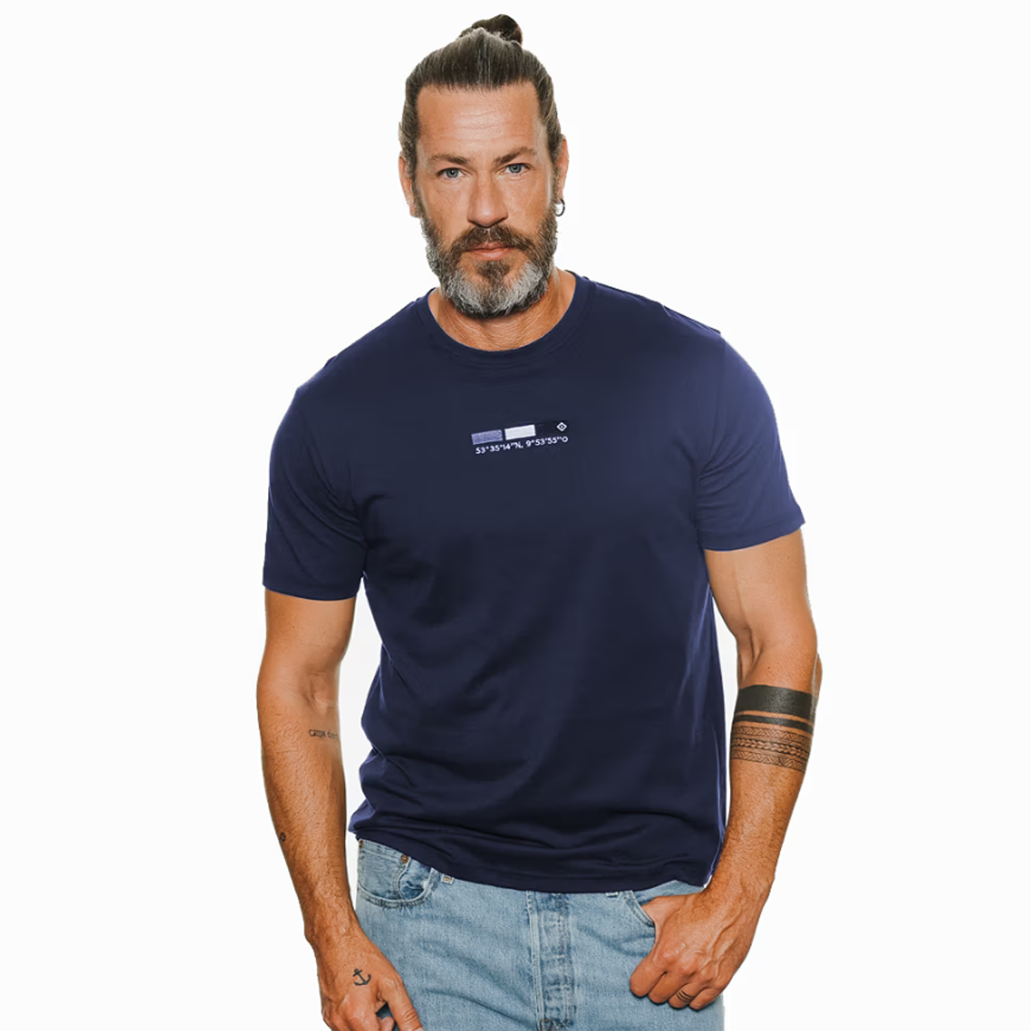 - Dunkelblaues T-Shirt mit HSV-Koordinaten-Print vorne
