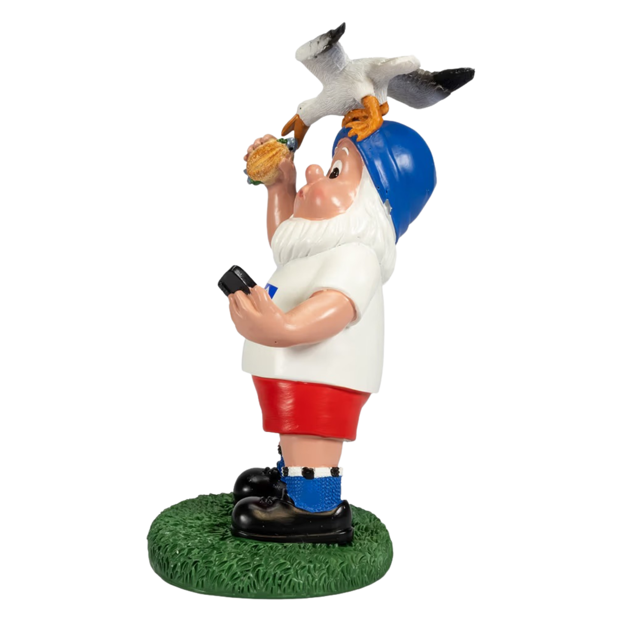Der Zwerg präsentiert stolz seine gefangene Möwe – und hält dabei auch noch eine Maisernte in der Hand. Ein perfektes Motiv für jeden HSV-Fan mit Garten oder Balkon. Die detailreich gestaltete Figur mit grünem Rasen als Sockel ist wetterfest und bringt das ganze Jahr über Freude ins Freie. Ob als Dekoration, Geschenk oder einfach als Statement für deine Vereinstreue – dieser Zwerg ist ein absoluter Hingucker.