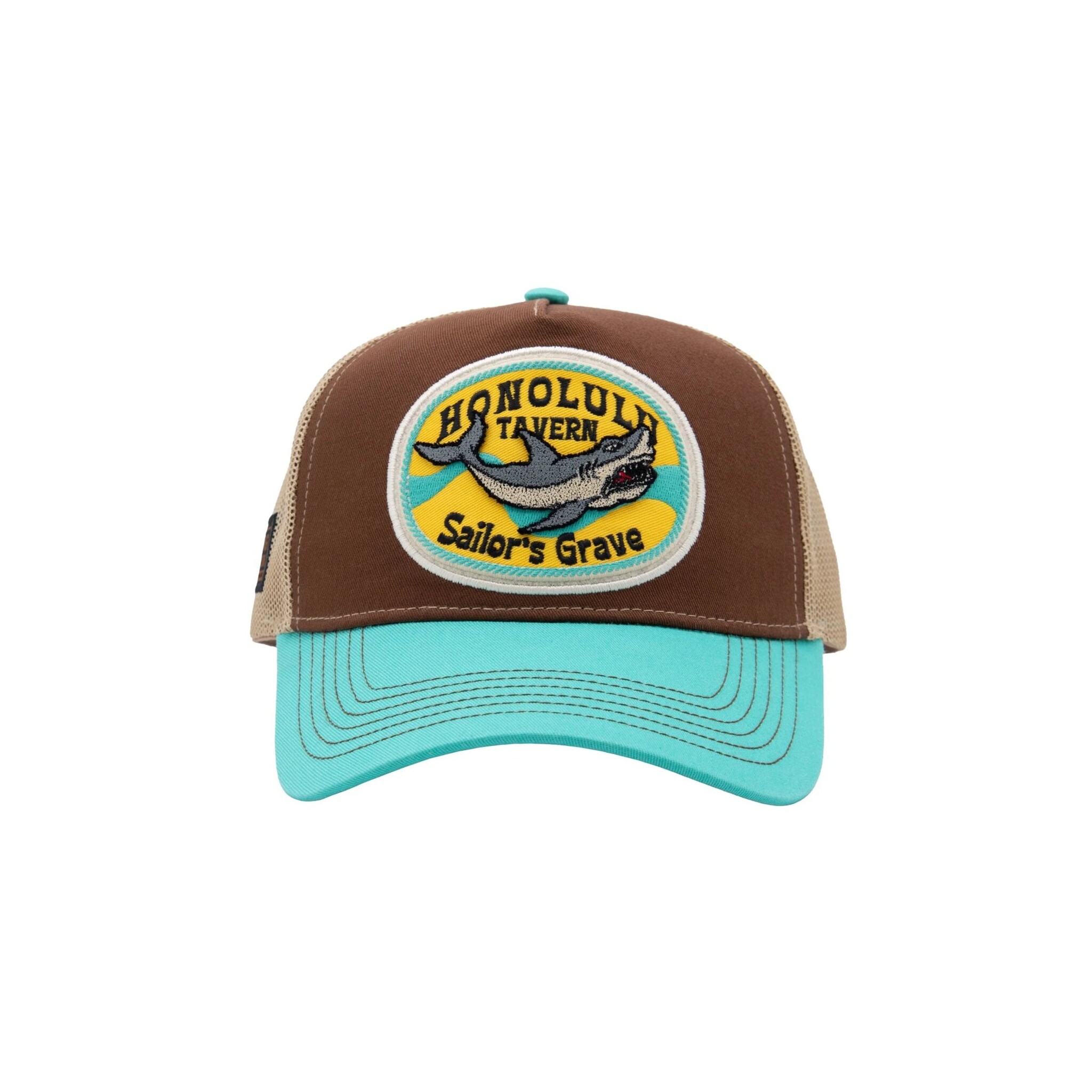 - Trucker Cap mit aufwendigem „Honululu Tavern“-Patch und Cut-Pile-Stickerei in dichter Teppichstruktur für spürbaren 3D-Feel