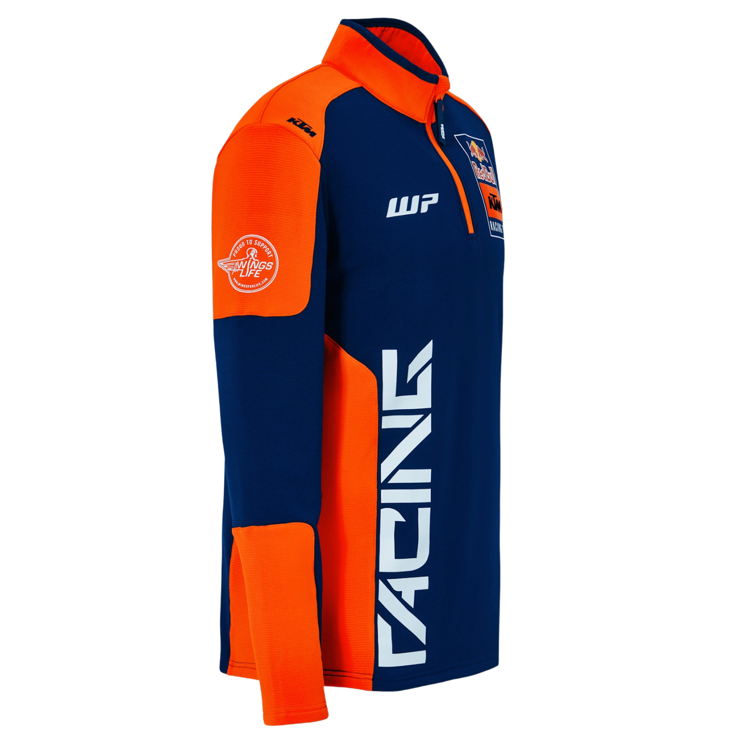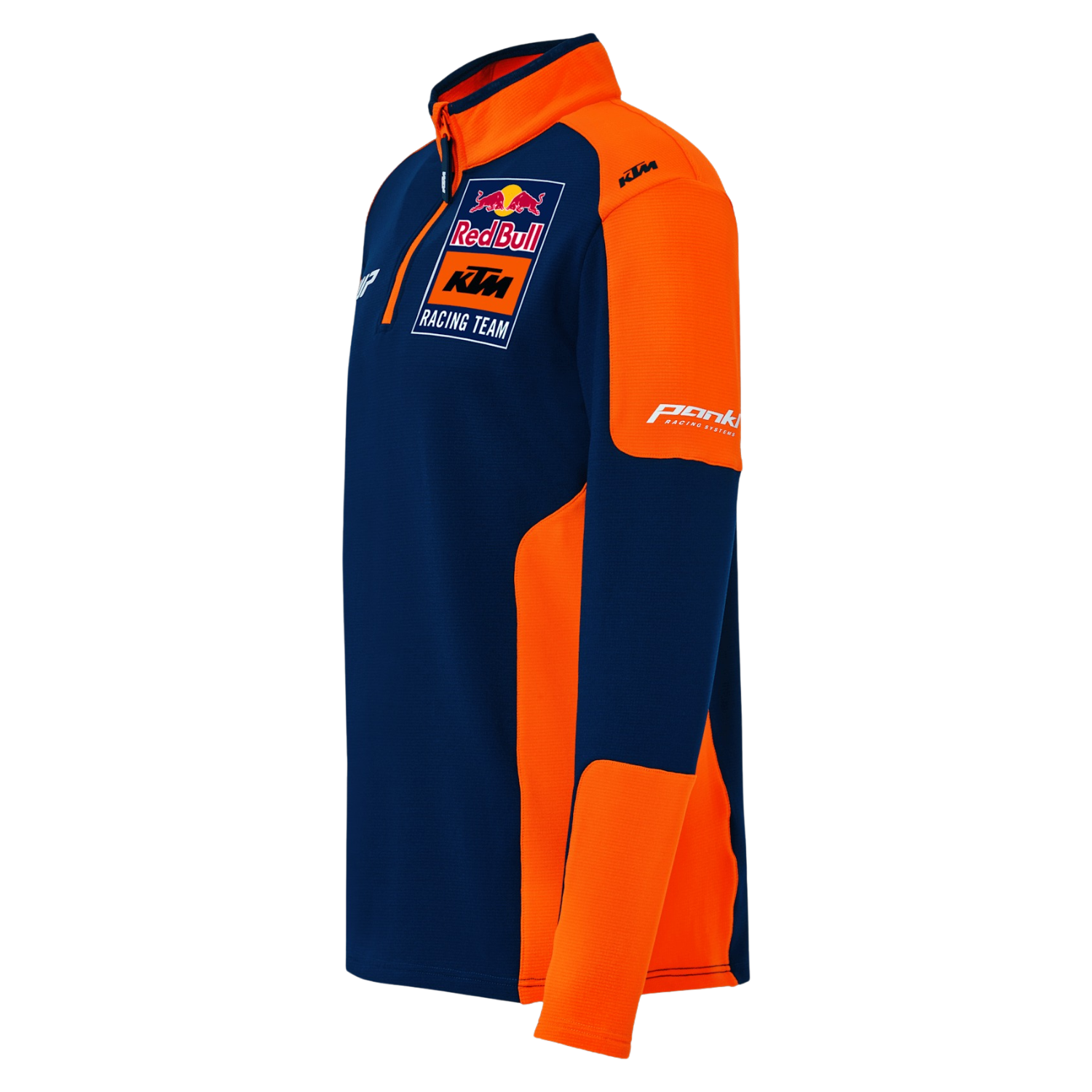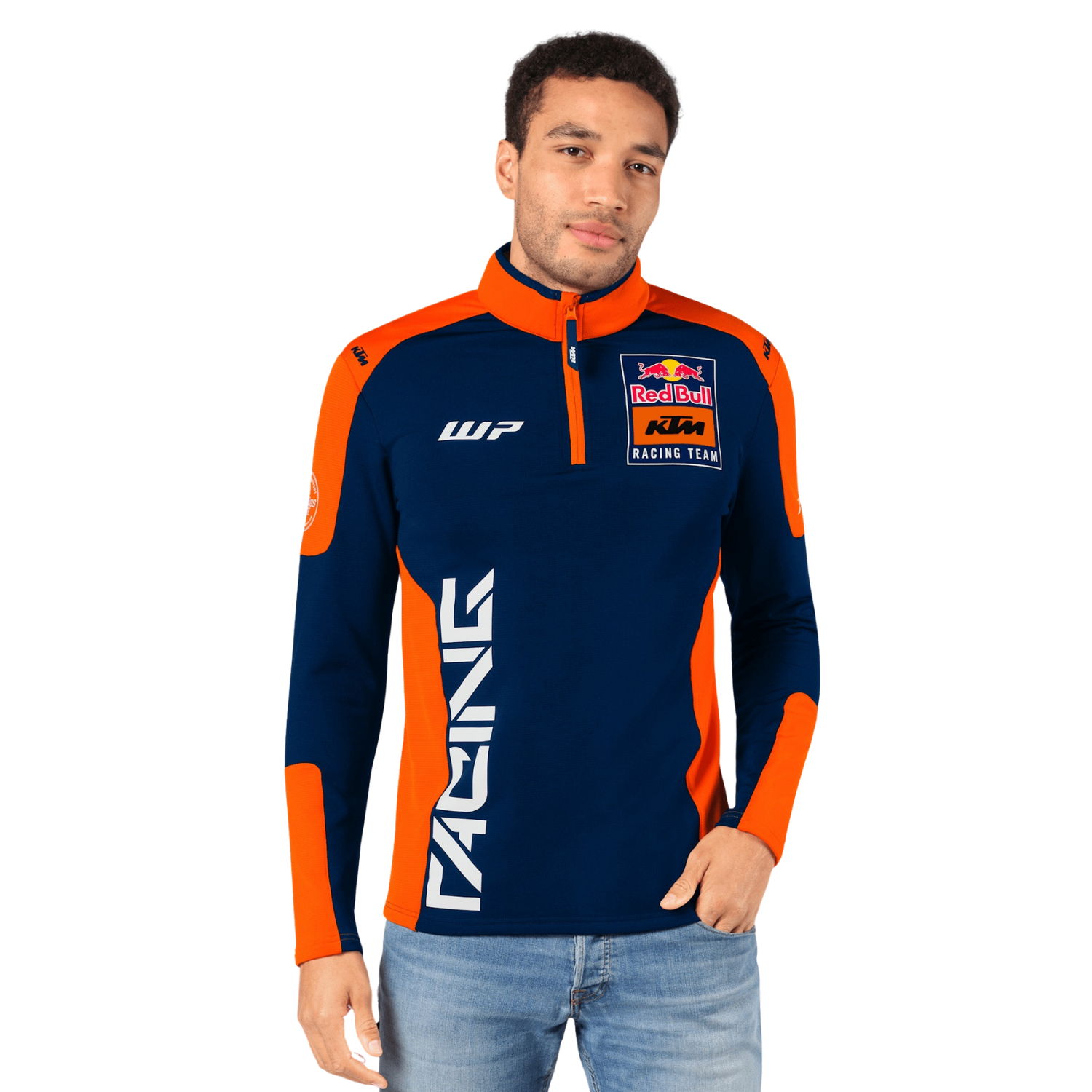 Mit dem Replica Team Half Zip Pullover des Red Bull KTM Racing Teams holst du dir den authentischen Look direkt aus der Boxengasse in deinen Alltag. Die sportliche Farbkombination aus Navyblau und Orange sowie die auffälligen Logos sorgen für echten Racing-Charakter. Der kurze Reißverschluss am Kragen und das atmungsaktive Funktionsmaterial machen den Pullover zu einem idealen Begleiter – egal ob an der Strecke oder in deiner Freizeit. Zeig, für welches Team dein Herz schlägt!