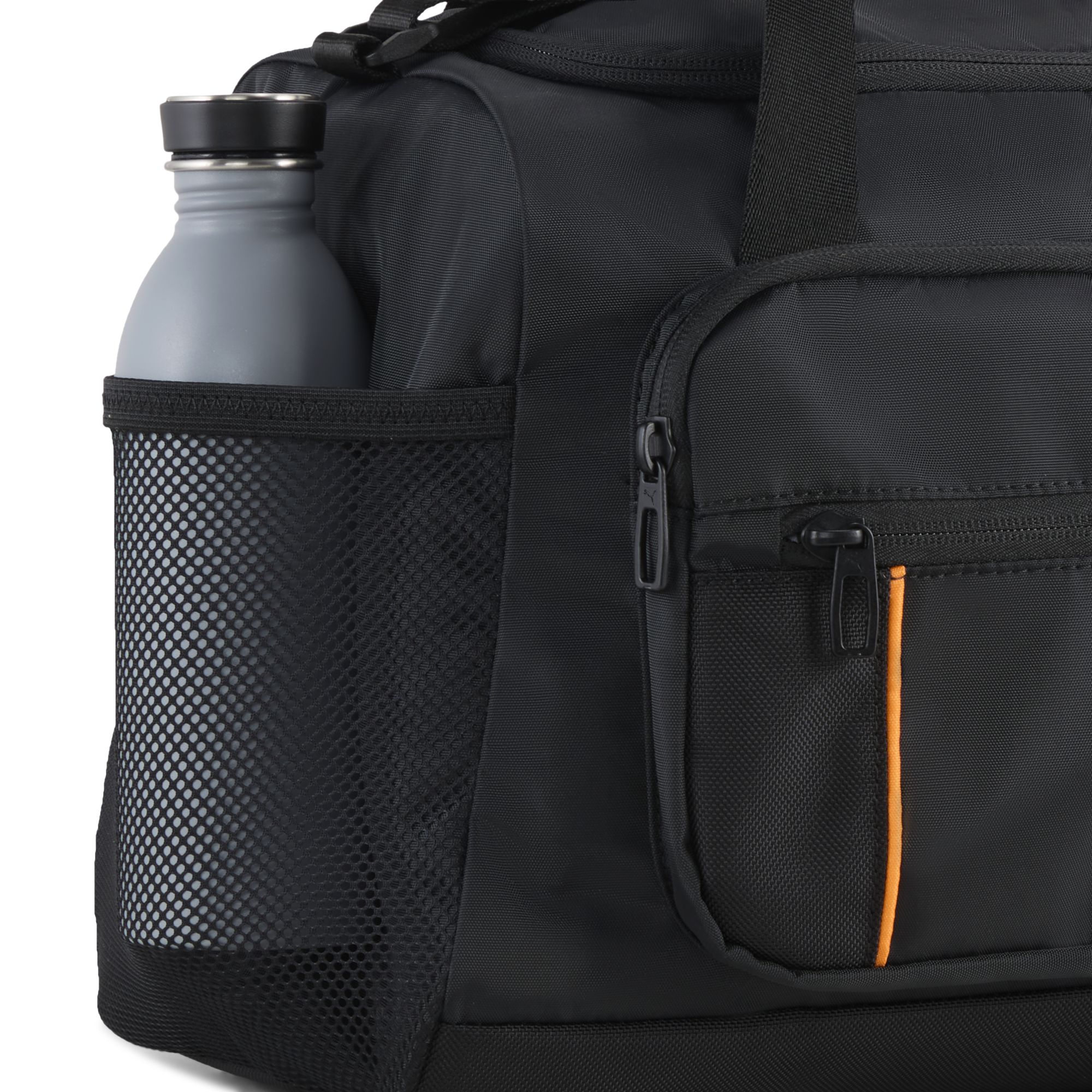 Das geräumige Hauptfach mit Reißverschluss bietet ausreichend Platz für die wichtigste Ausrüstung, während die vordere Reißverschlusstasche mit orangefarbenen Paspeln schnellen Zugriff auf Kleinigkeiten ermöglicht. Die beiden seitlichen Reißverschlusstaschen bieten zusätzlichen Stauraum für organisierte Aufbewahrung, und die praktische Netz-Seitentasche ist perfekt für eine Wasserflasche oder andere Gegenstände, die Belüftung benötigen. Das aufgenähte McLaren Logo mit "Racing"-Schriftzug und die orangefarbenen Akzente machen die Tasche zum authentischen Fanartikel. Das gepolsterte Tragegriff-Design sorgt für angenehmen Komfort. Aus strapazierfähigem Polyester gefertigt, hält diese Tasche alles aus – ob beim Fitnesstraining, beim Rennwochenende oder als praktischer Alltagsbegleiter.