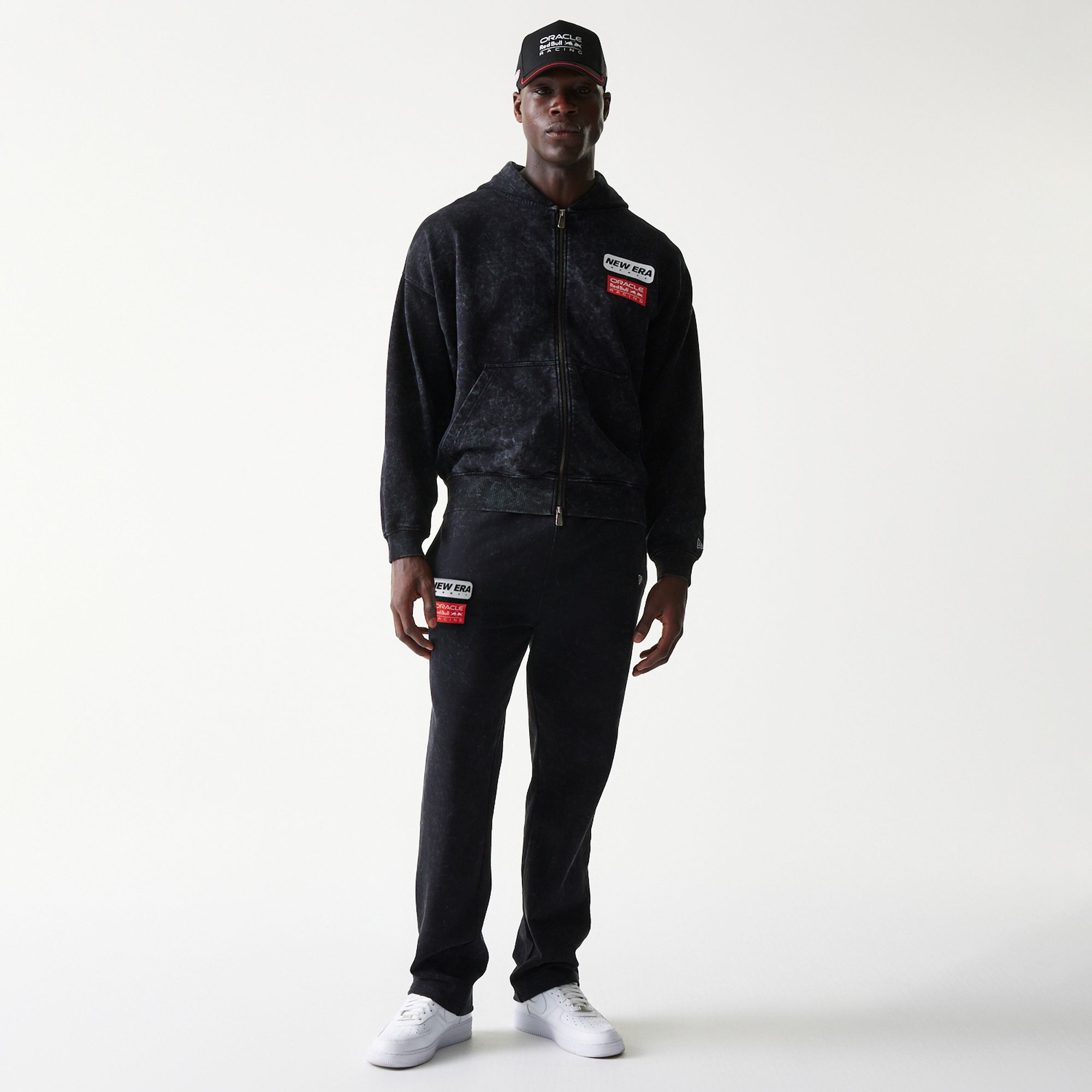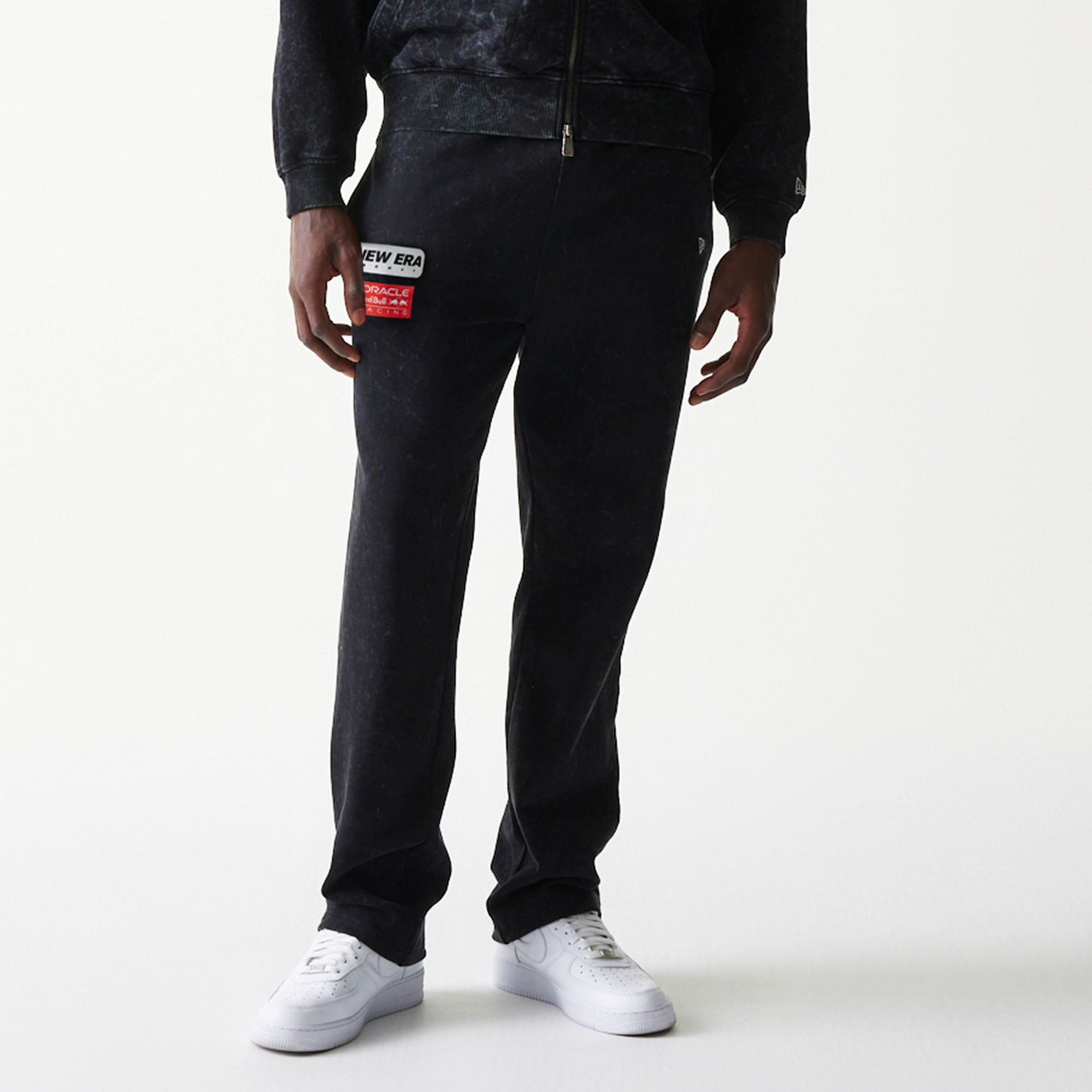 Die Hose kommt in klassischem Schwarz mit dezentem, leicht gewaschen wirkendem Look. Auf dem linken Oberschenkel setzen das gestickte New Era Logo sowie das Oracle Red Bull Racing Badge markante Akzente und zeigen klar, für welches Team dein Herz schlägt. Der elastische Bund sorgt zusammen mit den geraden Beinen für eine bequeme, alltagstaugliche Passform.
