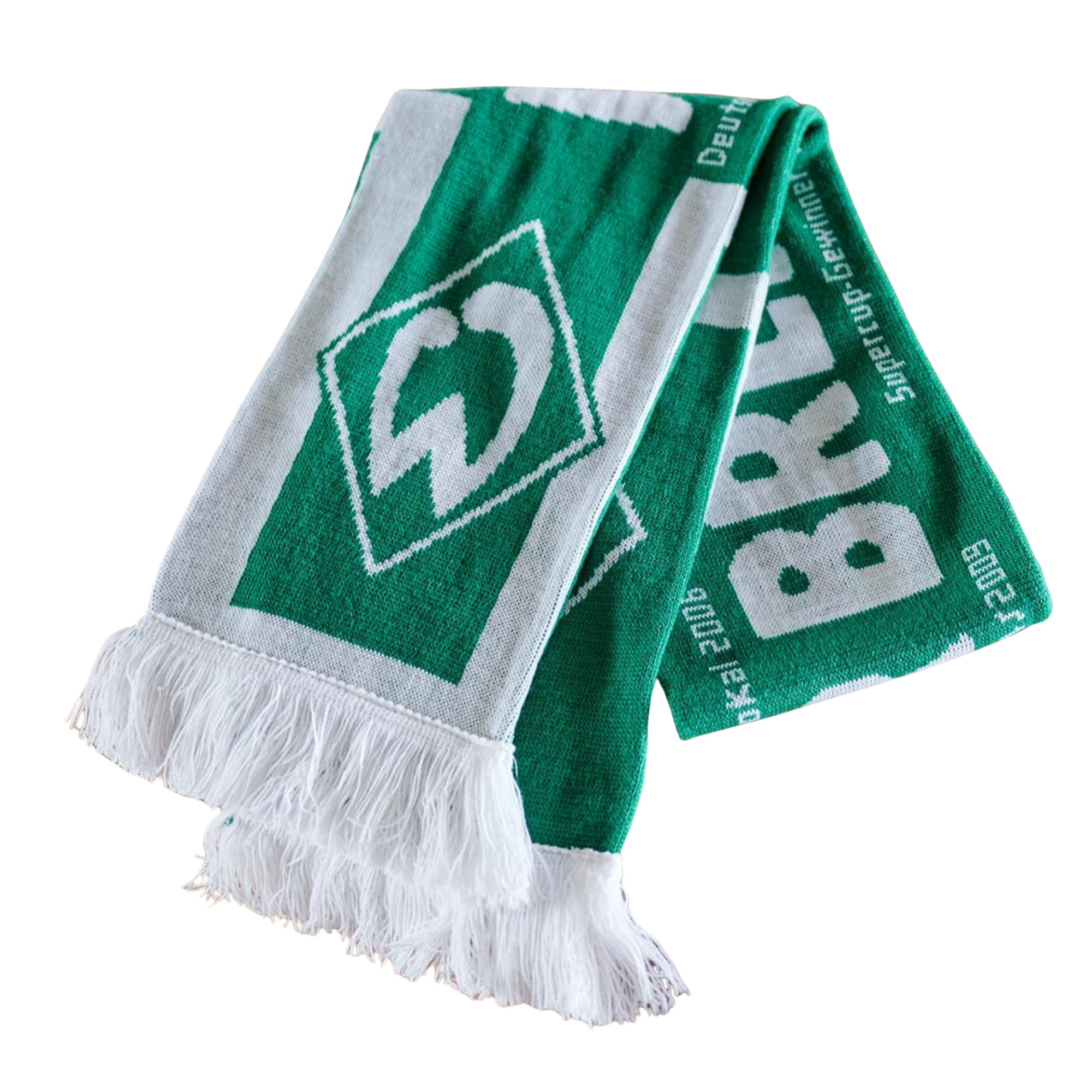 - Grün-weißer Schal mit Werder Bremen Schriftzug und eingewebten SVW Erfolgen
